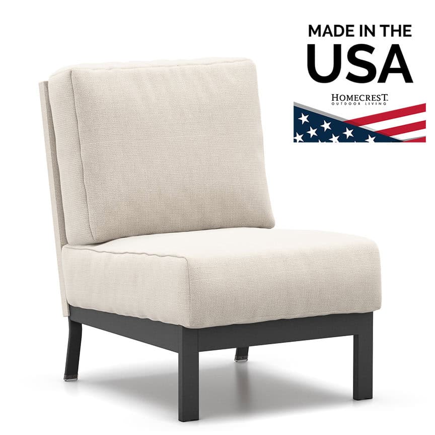 Best of all, each frame, cover, and cushion is crafted by Homecrest’s skilled team in the USA. Homecrest is proud to manufacture its iconic designs in America and support quality workmanship with the industry’s most comprehensive product warranty. Sectional units are not standalone pieces. We recommend using end units with arms on all modular configurations due to exposed brackets on armless versions.