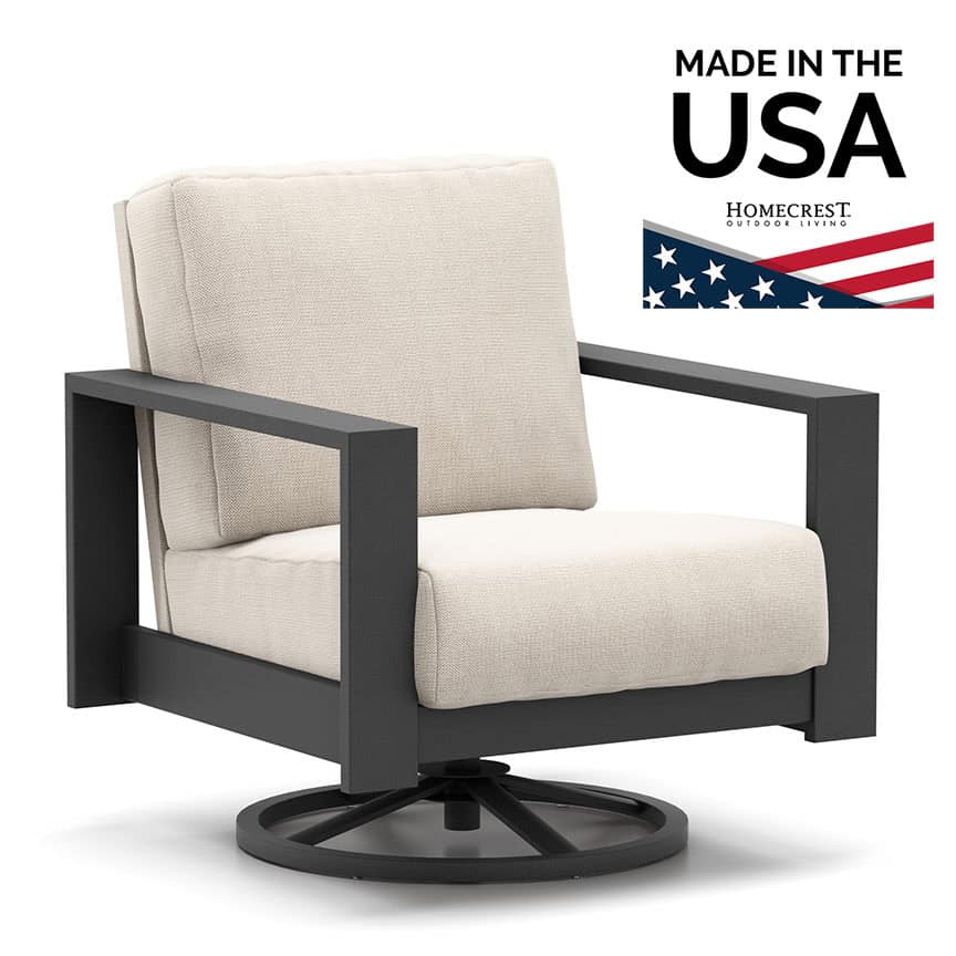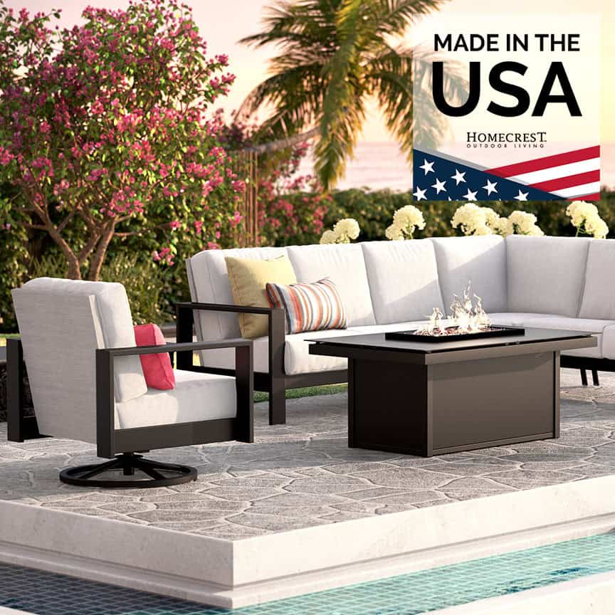 Best of all, each frame, cover, and cushion is crafted by Homecrest’s skilled team in the USA. Homecrest is proud to manufacture its iconic designs in America and support quality workmanship with the industry’s most comprehensive product warranty.