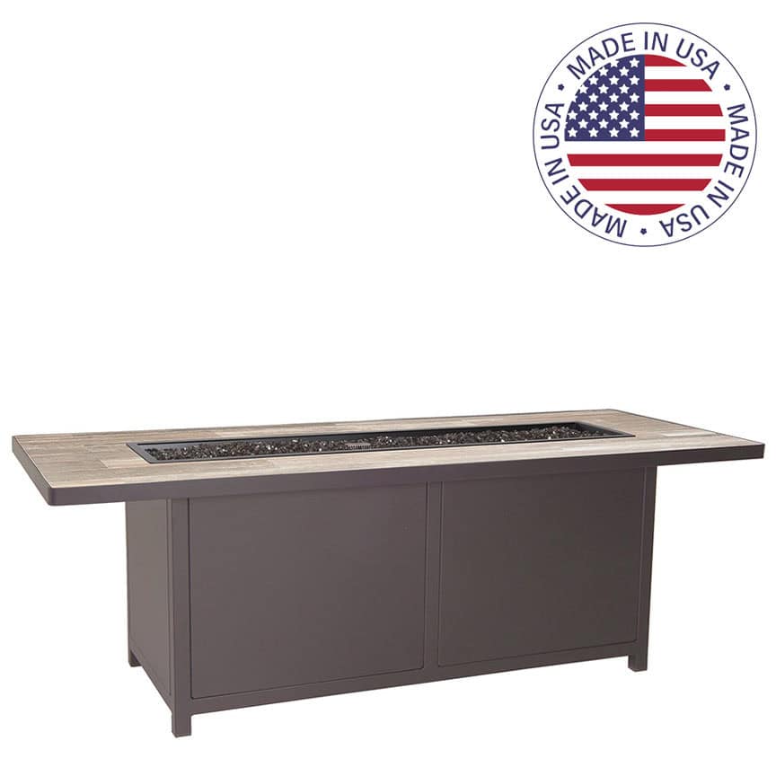 Elevate your outdoor gatherings with the sleek sophistication of the Capri Steel 28″x72″ Fire Pit. Designed with clean lines and modern appeal, Capri fire pits bring warmth, style, and exceptional functionality to any outdoor living space. The Capri Collection combines a sturdy iron base with a porcelain tile top. These firepits feature a stainless steel burner, a 7 step powder coating finish, a metal rim to protect the porcelain tile top, and a 3 layer table top to ensure strength and durability.