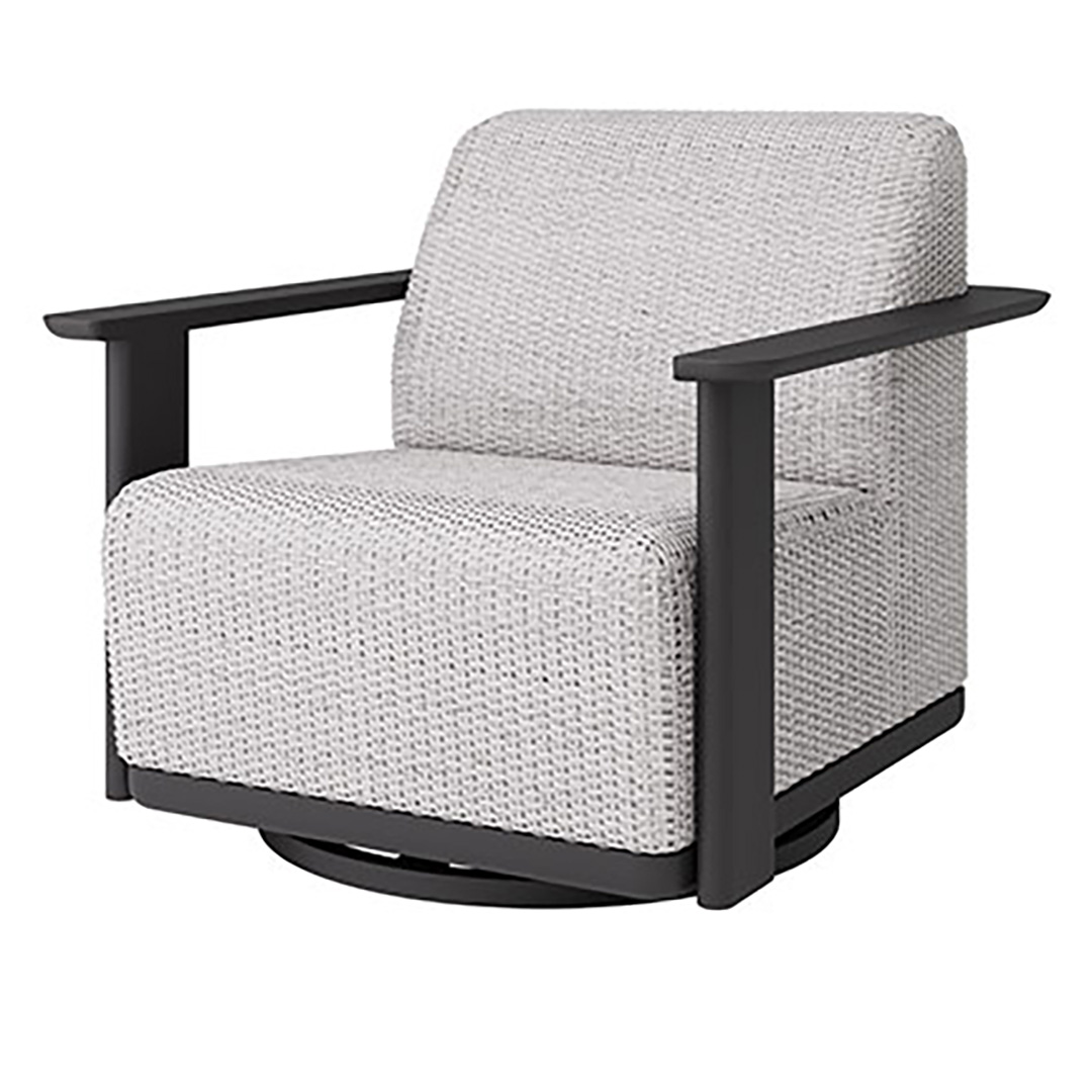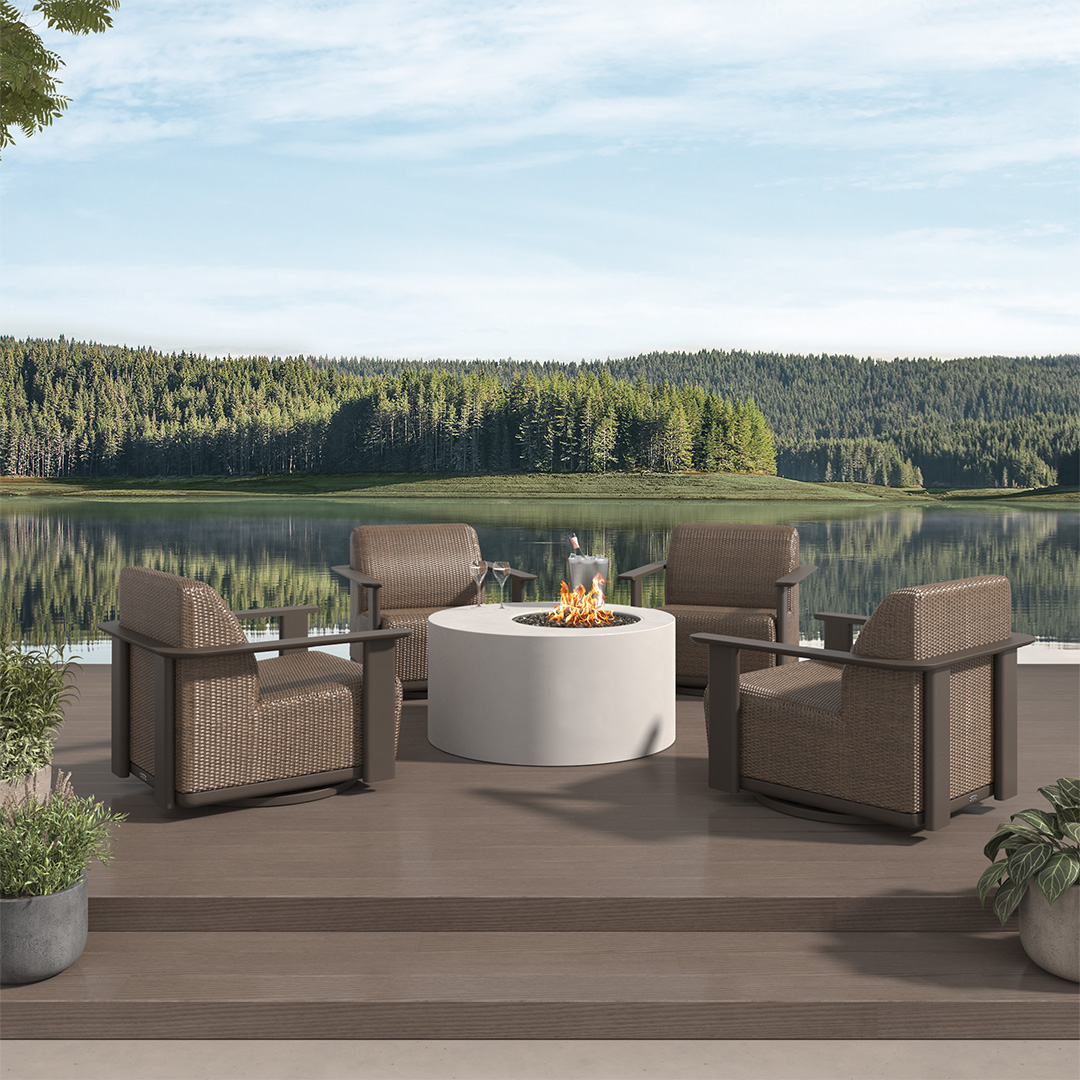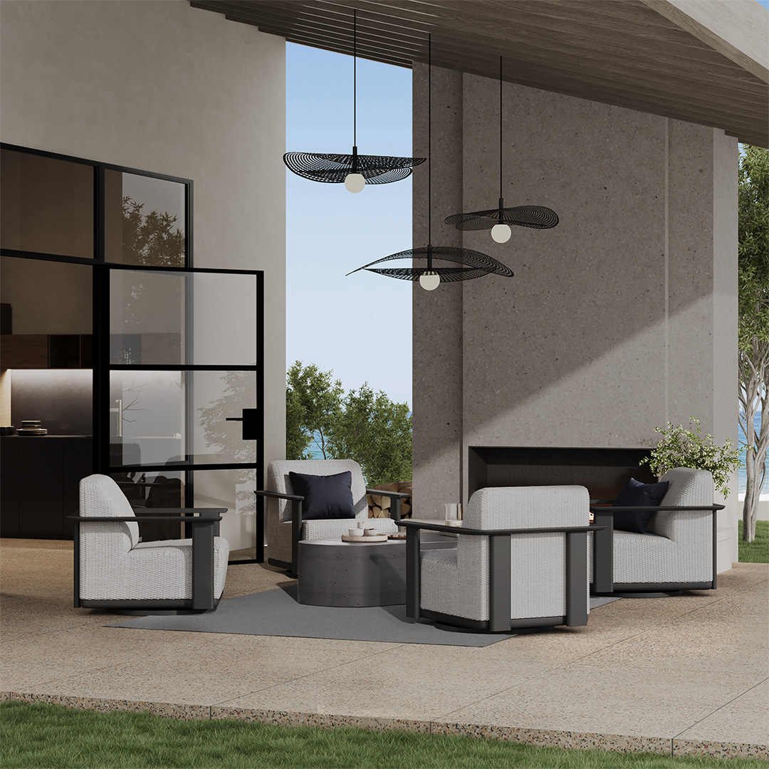 Indulge in the laid-back luxury of Ebel’s Corte Padded Club Swivel Rocker, where sculptural powder-coated arms frame an inviting seat. Each piece features built-in, quick-dry cushions with reticulated foam, so the comfort is as effortless as the maintenance. Choose between two perfectly curated hues — warm Cocoa / Hazel or breezy Pearl / Onyx — to tailor your oasis with understated elegance.