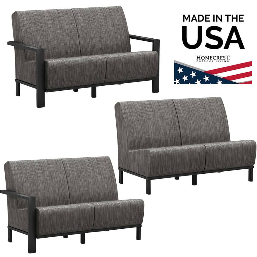 Homecrest’s Elements Air Loveseat features the appearance and comfort of deep seating in a foam-free, cushionless construction. It is available in an arm, armless, left arm, and right arm formats. Luxurious Sensation sling fabric is used for the ultimate in low-maintenance comfort and also features benefits such as exceptional shape retention and surface memory. Homecrest’s double layer sling design is extremely comfortable and field replaceable. Elements offers a versatile, stylish, and low-maintenance solution for your outdoor seating needs.