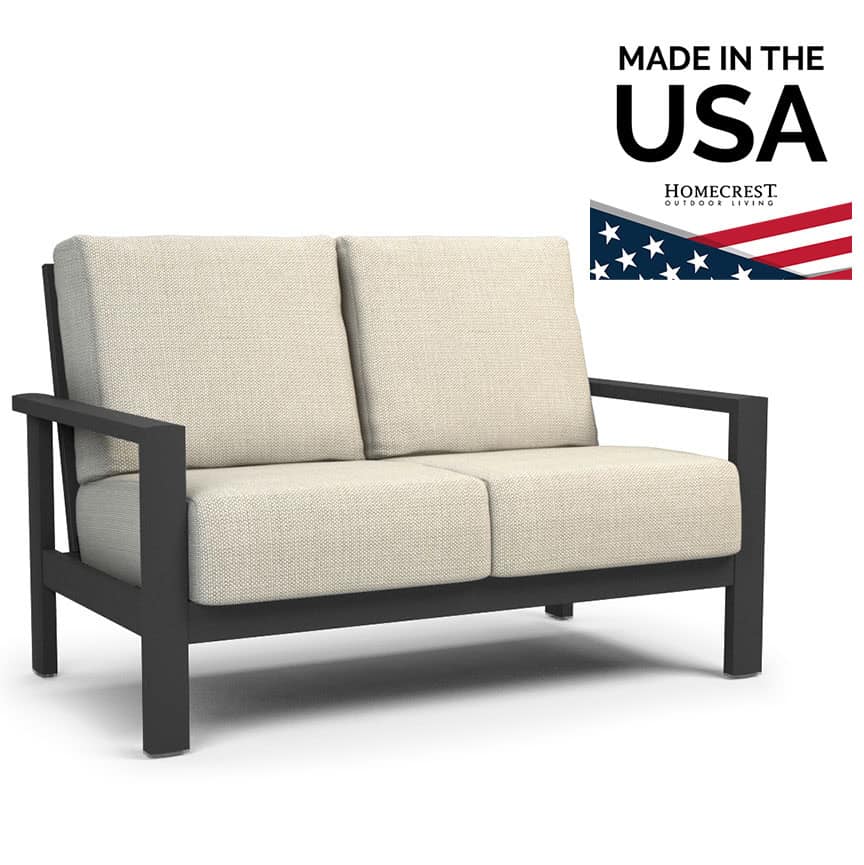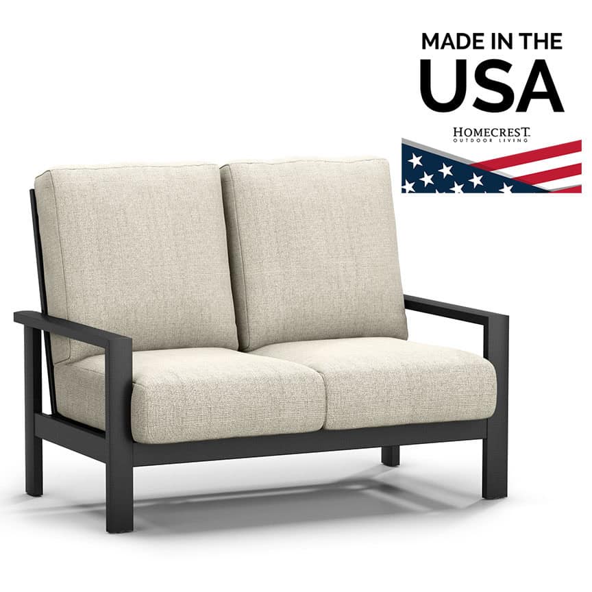 With Homecrest’s Elements Cushion Loveseat, you no longer have to choose between style and comfort. This bold deep seating series merges the fresh, transitional design of Homecrest’s popular Elements sling collection with the supreme comfort of our cushion technology. The luxurious seats and backrests feature High Resilient foam, ensuring durability, longevity, and unmatched comfort. Unlike conventional foam, Homecrest’s cushions offer exceptional elasticity, providing a superior seating experience.
