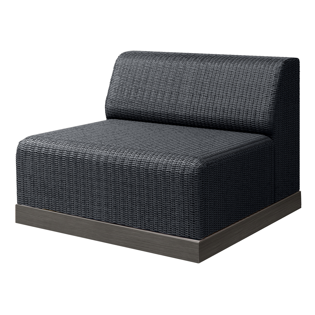 The Grande Padded Armless Club Chair boasts a low, sleek profile with built-in cushions, offering a modern twist on classic design. The rich, variegated Barley and Coal weaves cover the reticulated foam, ensuring exceptional comfort and quick drying times. With modular pieces, including a chaise lounge and multiple table options, the configuration possibilities are seemingly endless.