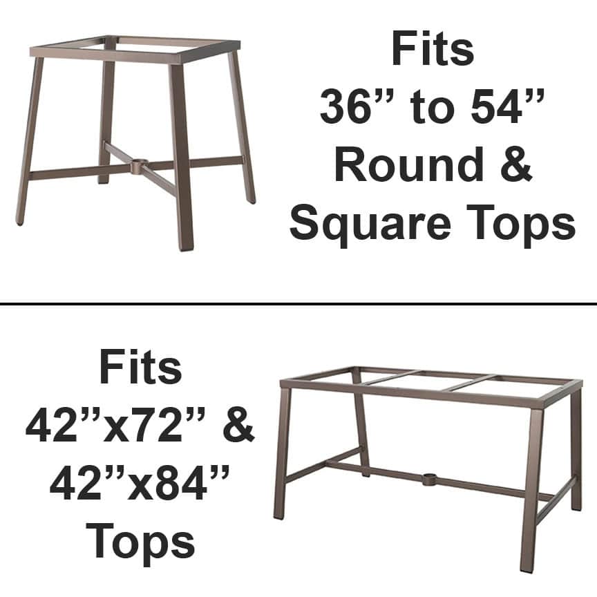 - 1.625″‘ Umbrella Hole: 42″ Round, 42″ Square, 54″ Round, 42″x72″, 42″x84″