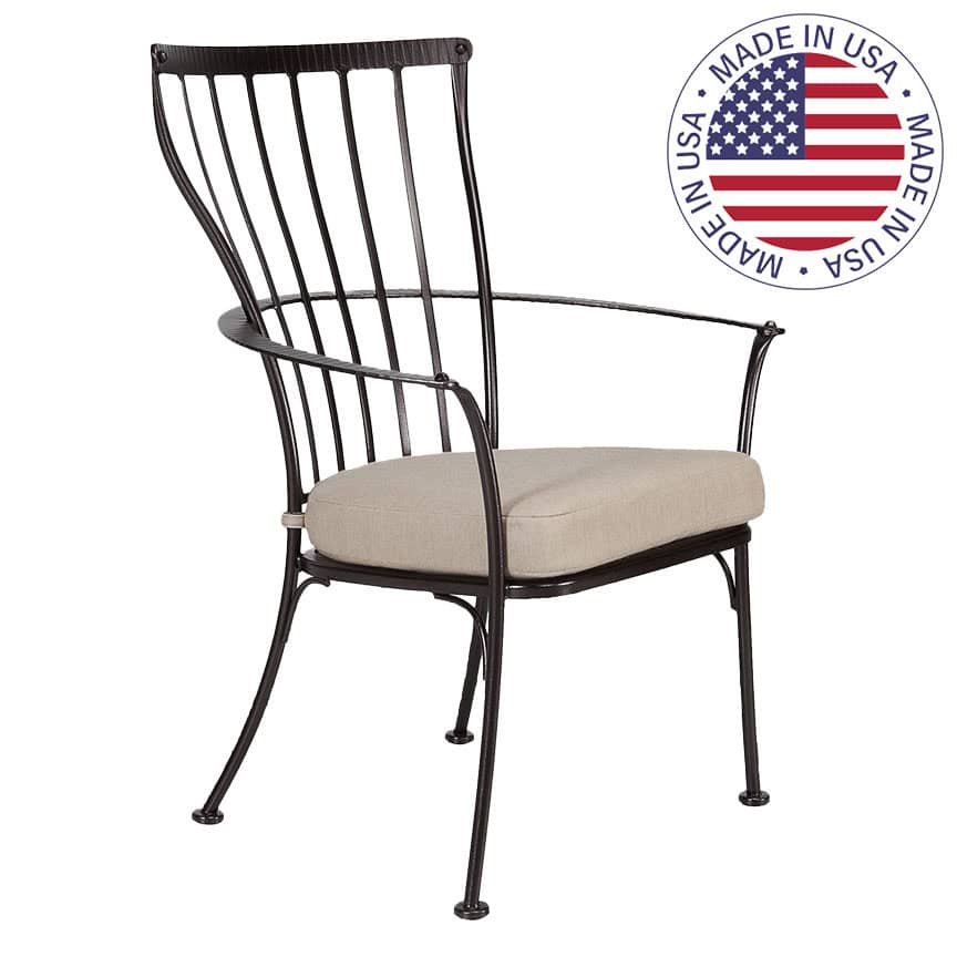 The Monterra Dining Arm Chair is inspired by Southwestern and Mediterranean influences, combining rustic charm with a touch of elegant warmth and timeless appeal in Wrought Iron. The style reflects a blend of Old World craftsmanship, earthy tones, and textural richness, evoking the spirit of both desert landscapes and Mediterranean villas. Made from 0.75” tubular steel that gently curves to the shape of your back and 1.5” embossed flat bar that joins the arms into the back to create a smooth rounded nest for summer time relaxation. Each piece is also detailed with hand hammered rivets for an aged look and feel. This collection includes dining chairs, counter stools, bar stools, ottomans, a chaise and sectional pieces. Lounge chairs, loveseats, and sofas are offered in both urban and traditional scales.