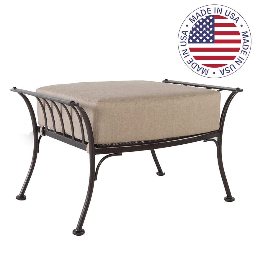 The Monterra Urban Scale Ottoman is inspired by Southwestern and Mediterranean influences, combining rustic charm with a touch of elegant warmth and timeless appeal in Wrought Iron. The style reflects a blend of Old World craftsmanship, earthy tones, and textural richness, evoking the spirit of both desert landscapes and Mediterranean villas. Made from 0.75” tubular steel that gently curves to the shape of your back and 1.5” embossed flat bar that joins the arms into the back to create a smooth rounded nest for summer time relaxation. Each piece is also detailed with hand hammered rivets for an aged look and feel. This collection includes dining chairs, counter stools, bar stools, ottomans, a chaise and sectional pieces. Lounge chairs, loveseats, and sofas are offered in both urban and traditional scales.