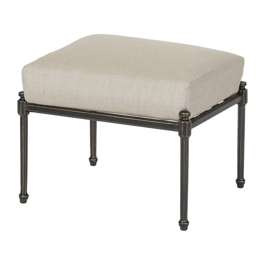 The Morro Bay Ottoman blends modern simplicity with classical elegance. Inspired by neoclassical architecture the collection complements traditional or transitional spaces alike. Its architectural, fluted legs meet with a sinuous, ribbon-like arm that starts and ends with a graceful volute, showcasing its neoclassical inspiration. Morro Bay honors the past with an eye to the future. Gensun’s focus is making sure life’s special moments outdoors are enjoyed with products that are beautiful, comfortable and durable. The Gensun family takes great pride in producing outdoor furniture and kitchens that will stand the test of time. Find the fabric grade after the fabric name (example: Ash – C).