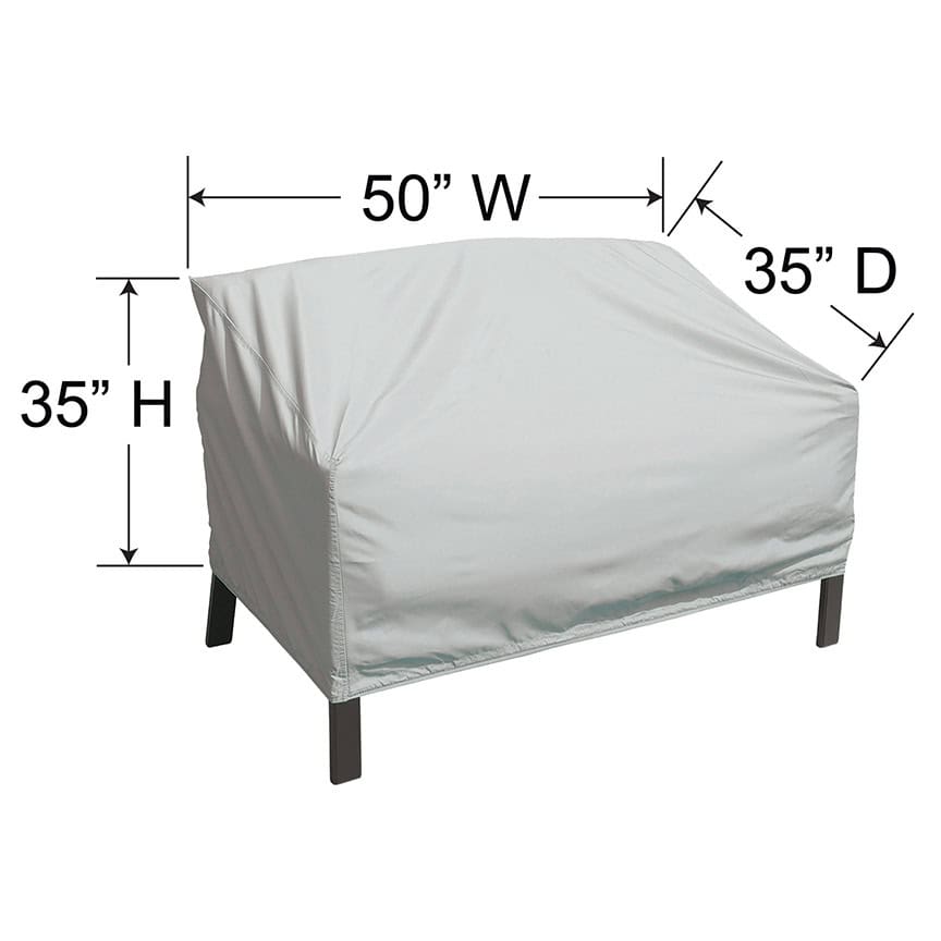 The PFC720 Loveseat Cover is made with a Treasure Garden coated polyester 300D gray exclusive fabric. Designed to be durable, breathable, and water resistant and will not crack or peel like vinyl. The protective cover is equipped with elastic and spring cinch locks to ensure a secure fit, along with a storage bag when cover is not in use. These features prevent the cover from being blown away by wind, providing reliable protection for your furniture even in adverse weather conditions.