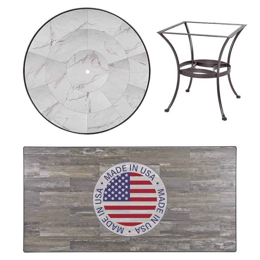 - 1.625″ Umbrella Hole: 42″ Round, 42″ Square, 54″ Round, 36″x58″, 42″x72″, and 42″x84″
