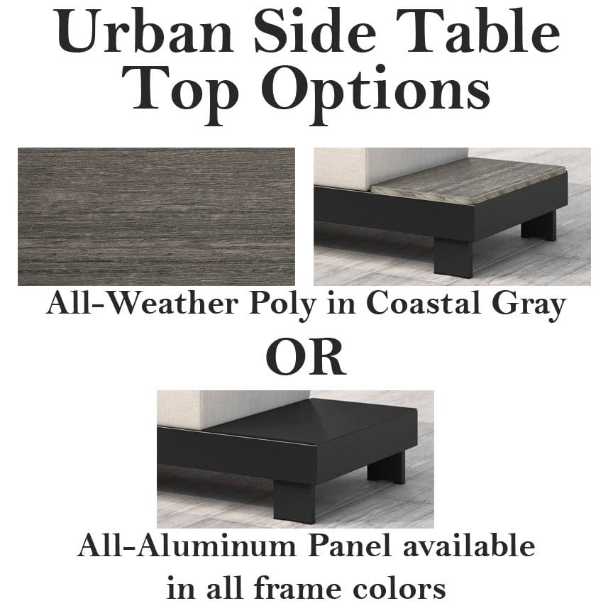 Featuring a modular design and clean, soft lines, Homecrest’s Urban Chat Chair Left Table has a contemporary appeal that is equally suited for backyards, apartment amenity decks, and everything in between. This collection is crafted with powder-coated aluminum and High Resilient, furniture-grade foam cushions. The built-in side tables are available with an all-weather poly woodgrain surface or an all-aluminum panel.
