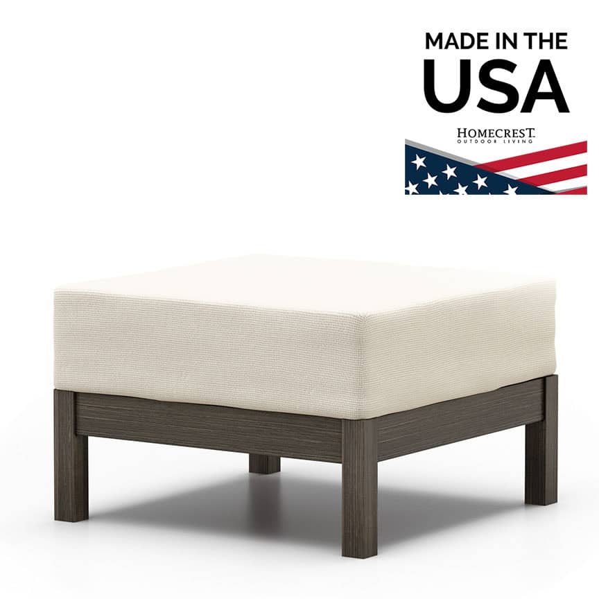 Designed to endure the demands of outdoor living, the Willow Ottoman by Homecrest boasts sleek lines, durable all-weather poly (HDPE) construction, and exceptionally comfortable cushions. The HDPE frame adds warmth and natural beauty, enhancing aesthetic appeal while ensuring resistance to the elements. Versatile and customizable, Willow offers a range of modular pieces that allow for unlimited configurations, making it the perfect choice for any outdoor space. The cushions are available in either DreamCore, featuring a curved fuller softer sit, or UltraCore, with a streamlined look and firmer support.